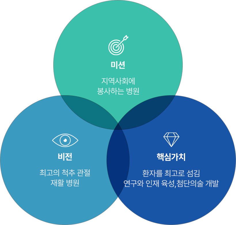 척추 질환을 중심으로 한 병원의 발전을 위하여 늘 연구하는 자세로 인재를 육성하고, 선진 의료장비 및 앞서 가는 의료 시설에 꾸준하게 투자함으로써 의료의 질을 높여 타 의료 기관과 차별화 시켜 나아간다.